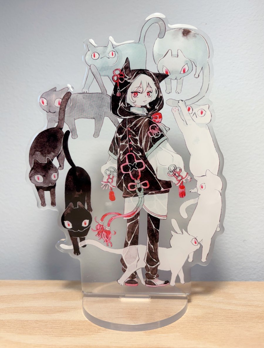 157mm tall Acrylic with base There are thin protective films on the acrylic that can be peeled off. Some misprint on the fingers/ minor scratch