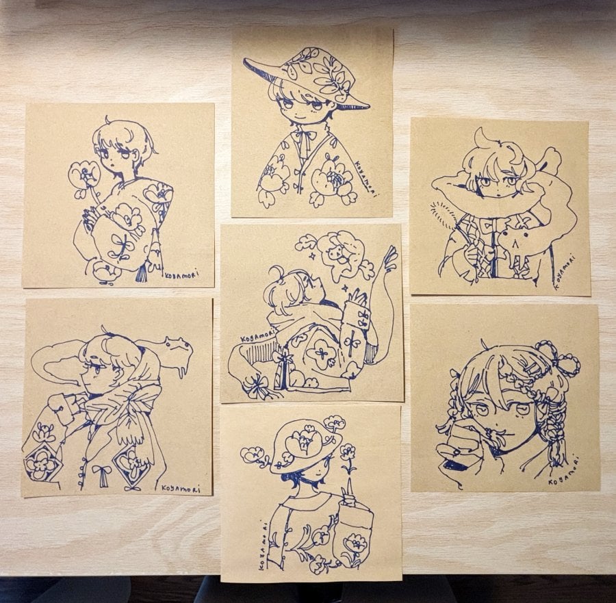 B-Grade items Prints, postcards, stickers, keychain, tote bag etc Contains 100$+ of items. Comes with a random doodle