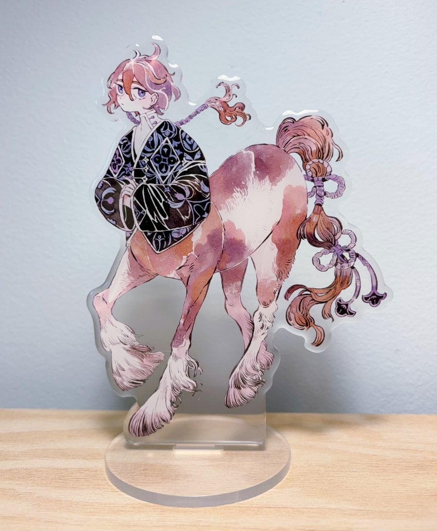 155mm tall Acrylic with base There are thin protective films on the acrylic that can be peeled off.